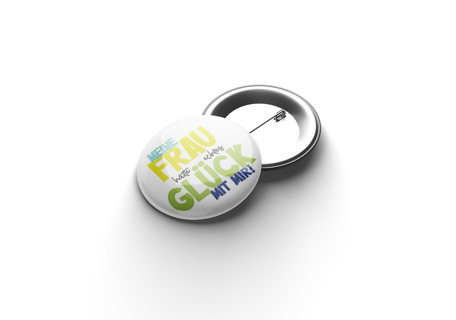😄 Ansteckbutton „Meine Frau hatte echtes Glück mit mir“